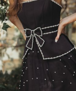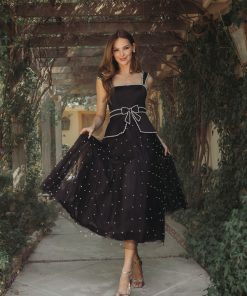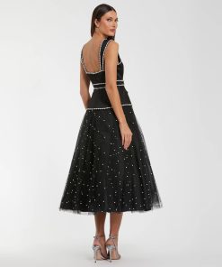 Be the first to review “Mac Duggal Women’s Dresses Black Sleeveless Embellished Crepe And Tulle Midi Dress | Black” Cancel reply