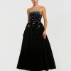 Mac Duggal Women’s Dresses Black And White Stretch Crepe Mermaid Gown With 3d Flowers | Black Cream