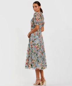 Be the first to review “Mac Duggal Women’s Dresses Blue Floral Mesh Ruffle High Neck Midi Dress | Blue Multi” Cancel reply