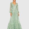 - Fully lined through bodice and skirt; sheer unlined cape sleeve