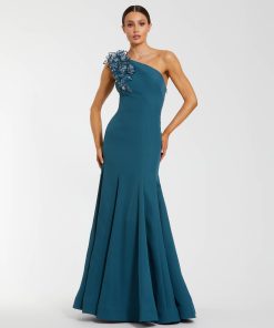 Be the first to review “Mac Duggal Women’s Dresses Blue One Shoulder Mermaid Gown With 3d Flowers | Ocean Blue” Cancel reply