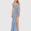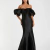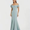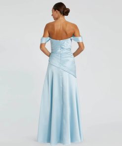 Mac Duggal Women’s Dresses Blue Satin Off The Shoulder Crossover Gown | Blue