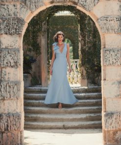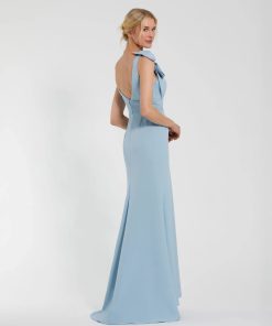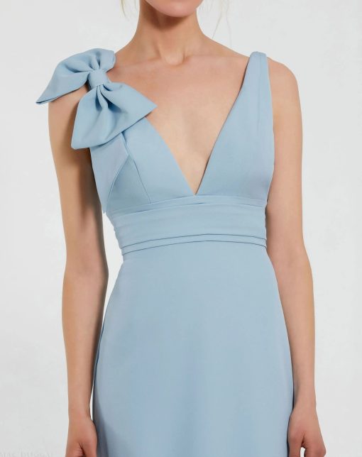 Step into style with our Sleeveless V-Neck Bow Detail Mermaid Gown, the perfect choice for any special occasion. This stunning gown features a flattering sleeveless design, a chic V-neckline, and a striking bow detail that adds a touch of elegance. The mermaid silhouette enhances your figure, making it ideal for weddings, galas, or evening events.
