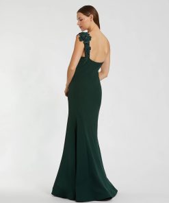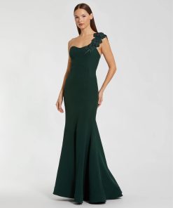 Be the first to review “Mac Duggal Women’s Dresses Dark Green Crepe One Shoulder Beaded Flower Mermaid Gown | Green” Cancel reply