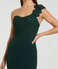 Mac Duggal Women’s Dresses Dark Green Crepe One Shoulder Beaded Flower Mermaid Gown | Green