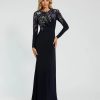 Mac Duggal Women’s Dresses Black Embellished Jersey Long Sleeve Ballgown With Tulle Skirt | Black