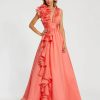 Mac Duggal Women’s Dresses Green Pleated High Neck Raglan Long Sleeve Side Slit Gown | Green