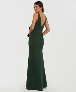 Mac Duggal Women’s Dresses Green Crepe Sleeveless V-neck Gown With Bow | Green