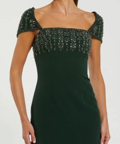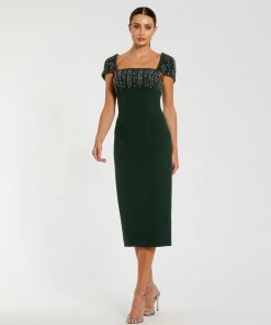 Be the first to review “Mac Duggal Women’s Dresses Green Embellished Cap Sleeve Crepe Midi Dress | Dark Emerald” Cancel reply