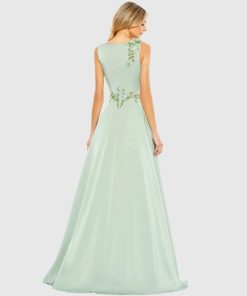 Mac Duggal Women’s Dresses Green Floral Applique Sleeveless A Line Gown | Sage