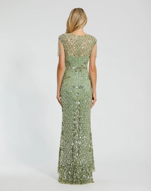 - Beaded fringe cap sleeves