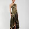 Mac Duggal Women’s Dresses Green Pleated High Neck Raglan Long Sleeve Side Slit Gown | Green
