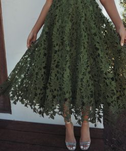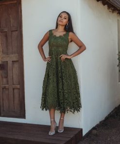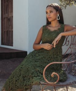 Be the first to review “Mac Duggal Women’s Dresses Green Sleeveless Embroidered Lace A Line Midi Dress | Army Green” Cancel reply