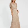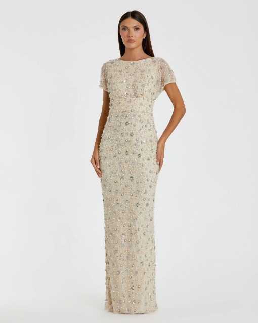 Mac Duggal Women’s Dresses Ivory Floral Embellished Mesh Fitted Column Gown | Oyster