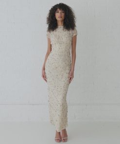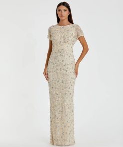 Be the first to review “Mac Duggal Women’s Dresses Ivory Floral Embellished Mesh Fitted Column Gown | Oyster” Cancel reply