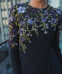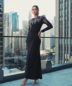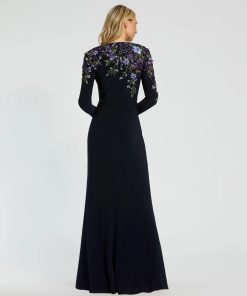 This stunning gown offers a perfect fit with its jersey fabric, long sleeves, and ruched waistband. The embellished bodice adds a touch of elegance, making it perfect for any formal event. Stay comfortable and stylish all night long in this show-stopping dress.