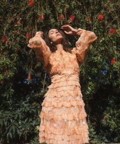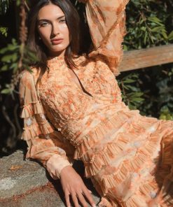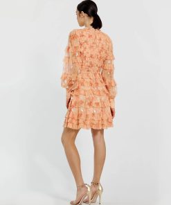 Mac Duggal Women’s Dresses Orange Key Hole Detail Long Sleeve Dress | Orange