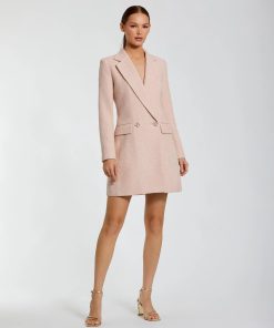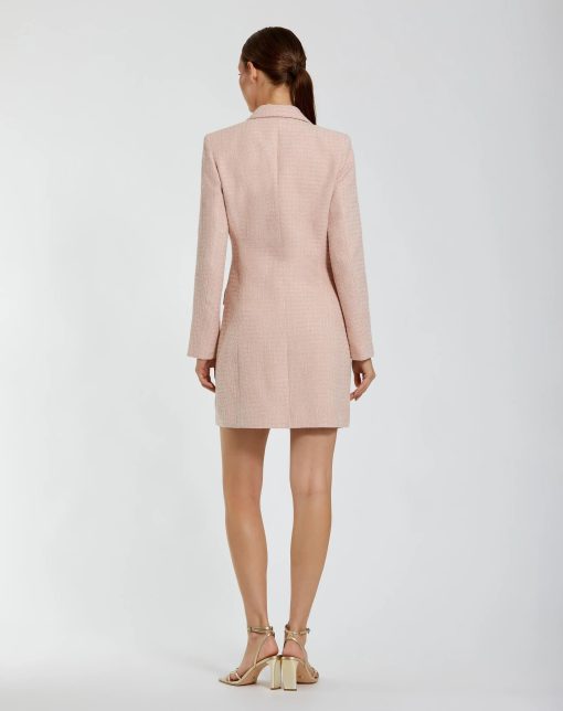 Mac Duggal Women’s Dresses Pink Boucle Long Sleeve Blazer Mini Dress | Pink