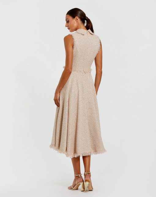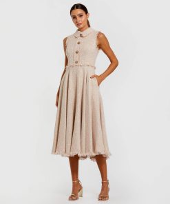 Mac Duggal Women’s Dresses Pink Boucle Sleeveless Collared Button Up Midi Dress | Pink