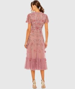 Mac Duggal Women’s Dresses Pink Embellished High Neck Flutter Sleeve A Line Dress | Berry