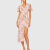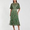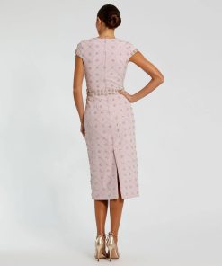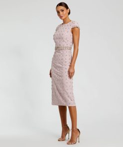 Mac Duggal Women’s Dresses Pink Hand Embellished High Neck Midi Dress | Mauve