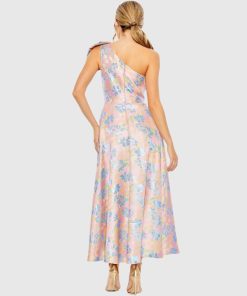 Stunning floral-printed dress with oversized bow detail and pockets.