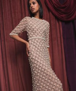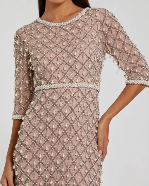 Be the first to review “Mac Duggal Women’s Dresses Pink Pearl Embellished 3/4 Sleeve Gown | Light Rose” Cancel reply