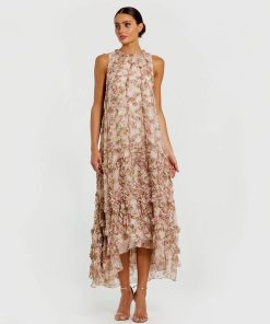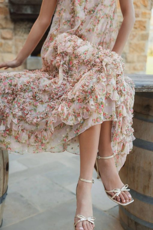 Light, airy, and effortlessly elegant, this sleeveless pink midi dress features a delicate floral print and playful micro ruffles. Lightly embellished for a subtle sparkle, it’s perfect for any occasion where you want to shine with effortless daytime charm.