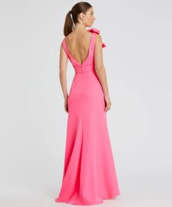 Step into style with our Sleeveless V-Neck Bow Detail Mermaid Gown, the perfect choice for any special occasion. This stunning gown features a flattering sleeveless design, a chic V-neckline, and a striking bow detail that adds a touch of elegance. The mermaid silhouette enhances your figure, making it ideal for weddings, galas, or evening events.