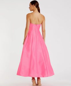 Mac Duggal Women’s Dresses Pink Strapless A-line Tea Length Statement Bow Dress | Candy Pink