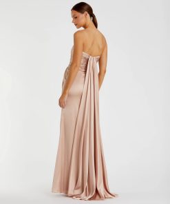 Mac Duggal Women’s Dresses Pink Strapless Charmeuse Wrap Gown With Cutout Detail | Pink