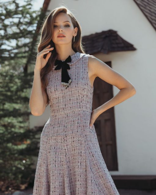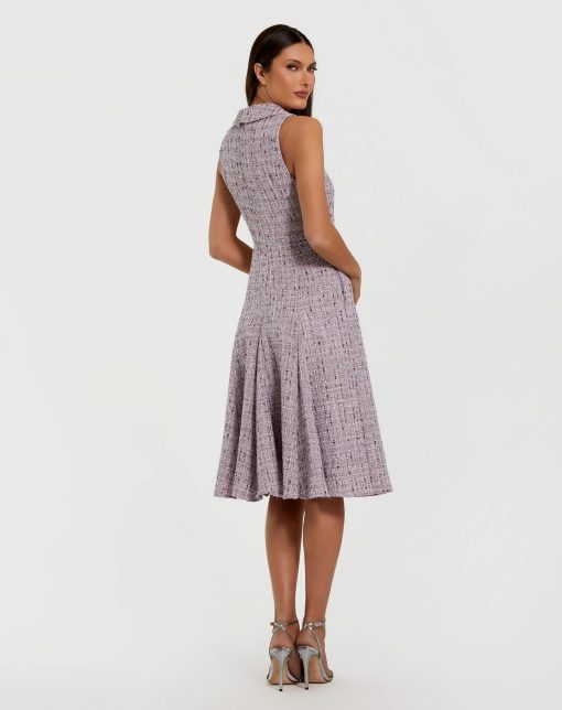 Mac Duggal Women’s Dresses Purple Sleeveless Boucle A-line Midi Dress With Bow | Purple