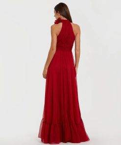 Mac Duggal Women’s Dresses red Halter Neck Chiffon Gown With 3d Flower | Red