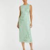 Mac Duggal Women’s Dresses Green Pleated High Neck Raglan Long Sleeve Side Slit Gown | Green