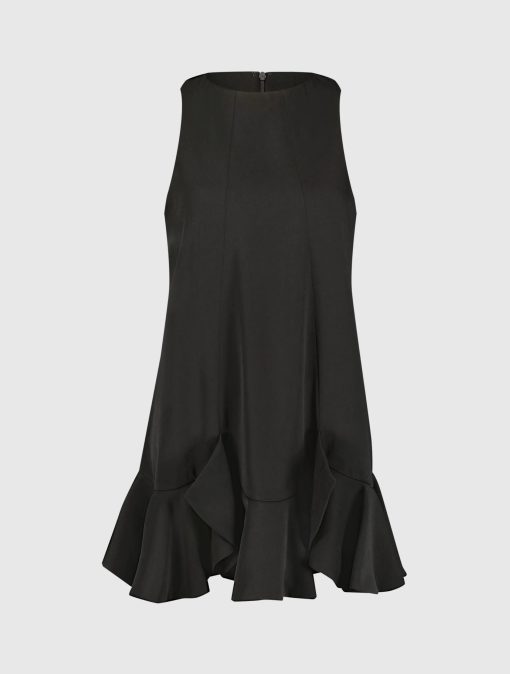 Mac Duggal Women’s Dresses The Mia Black High Neck Sleeveless Crepe Mini Dress With Ruffle Hem | Black