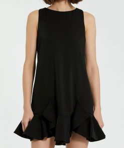 Be the first to review “Mac Duggal Women’s Dresses The Mia Black High Neck Sleeveless Crepe Mini Dress With Ruffle Hem | Black” Cancel reply