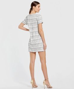 Be the first to review “Mac Duggal Women’s Dresses White Short Sleeve Boucle Mini Dress With Bow | White” Cancel reply