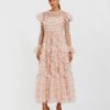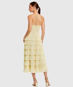 Mac Duggal Women’s Dresses Yellow Mesh Micro Ruffle Strapless Midi Dress | Buttercup