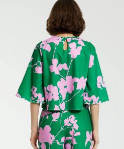 Be the first to review “Mac Duggal Women’s Green Printed Crepe 3/4 Bell Sleeve High Neck Top – Final Sale | Green Multi” Cancel reply