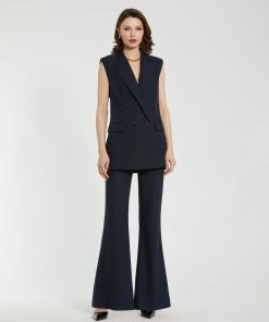 Mac Duggal Women’s Navy Classic Crepe Flared Trouser Pant – Final Sale | Navy