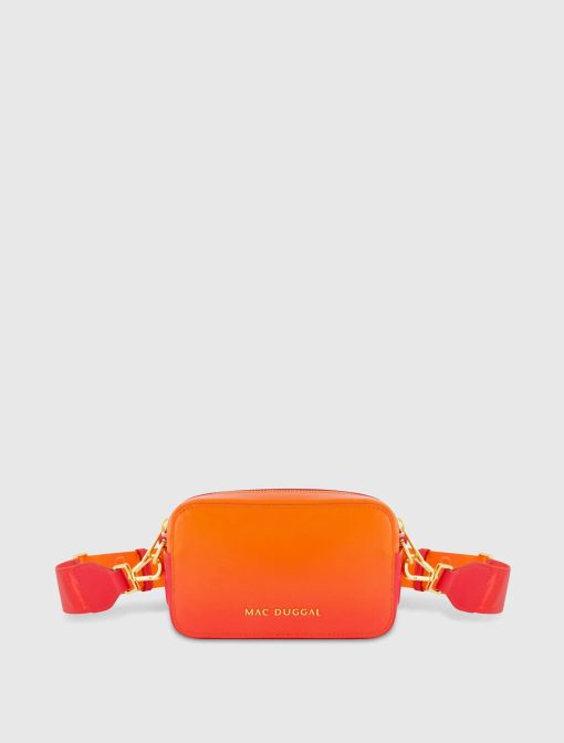 Mac Duggal Women’s Orange Ombre Small Leather Crossbody Camera Bag With Adjustable Strap | Sunset Ombre