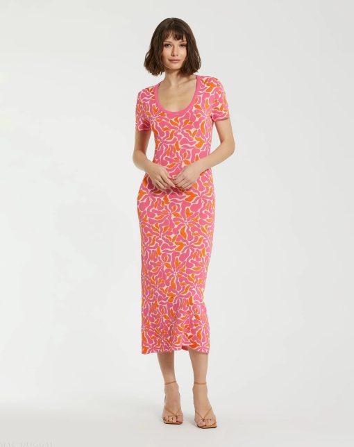 Be the first to review “Mac Duggal Women’s Pink Short Sleeve Scoop Neck Floral Knit Maxi Dress | Hot Pink Multi” Cancel reply