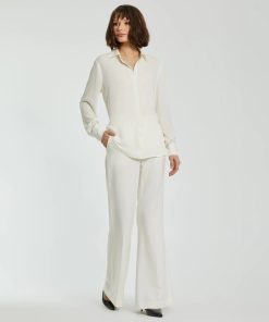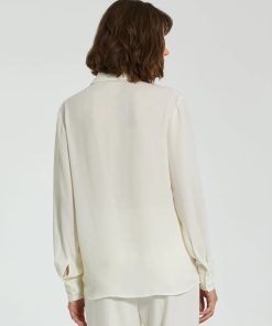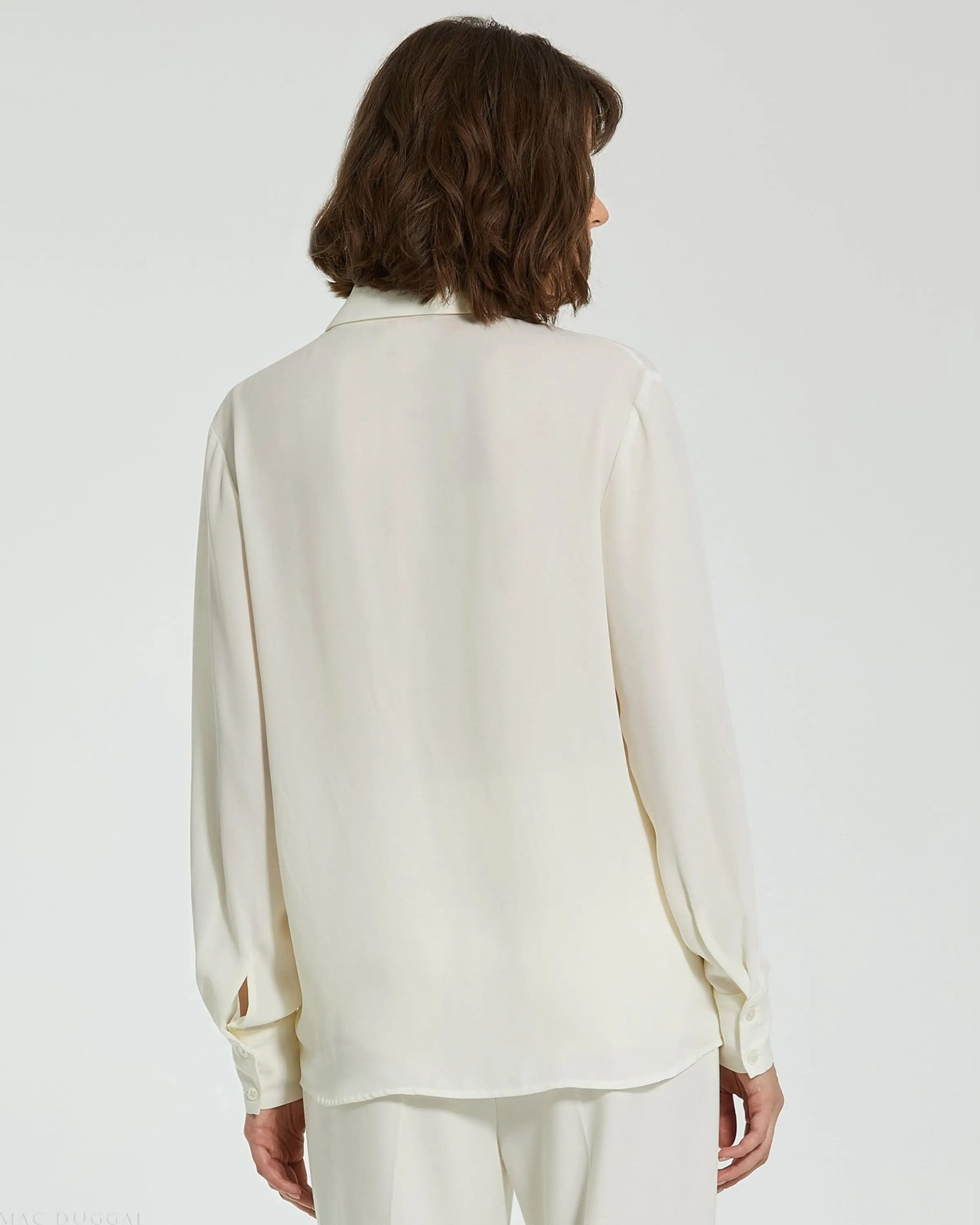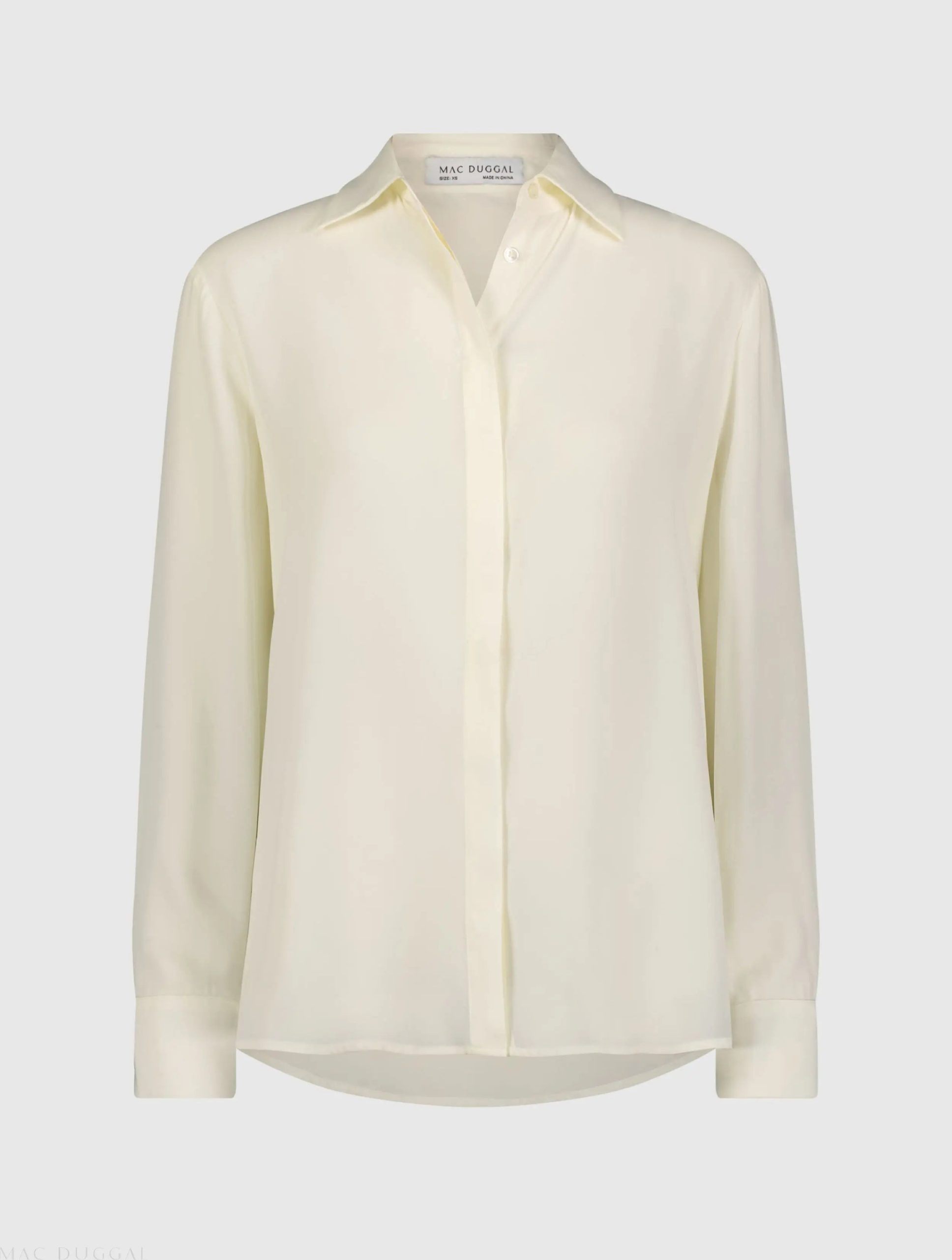 Mac Duggal Women’s The Bentley White Long Sleeve Button Up Georgette Blouse – Final Sale | Cream