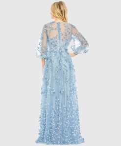 This Embroidered Puff Sleeve A-Line Gown blends delicate embroidery with chic puff sleeves, crafting a regal yet flattering silhouette. Perfect for weddings, galas, and formal events, it adds a timeless touch of elegance and sophistication to any special occasion.