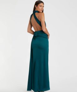 Mac Duggal Women’s Wedding Blue Open Back High Neck Side Ruched Gown | Blue