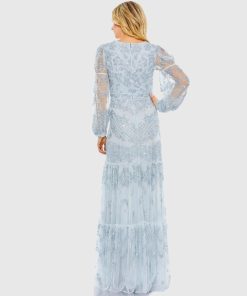 Be the first to review “Mac Duggal Women’s Wedding Blue Sequined Tiered Wrap Over Puff Sleeve Gown | Blue” Cancel reply