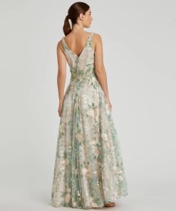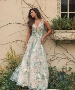 Make a stunning entrance in our Floral Embroidered Illusion V-Neck Gown. This elegant dress features delicate floral embroidery and a flattering plunging v-neckline, exuding timeless sophistication. Perfect for evening events or special occasions, this gown is sure to leave a lasting impression with its romantic and ethereal charm.