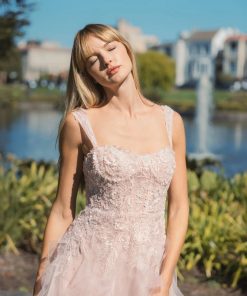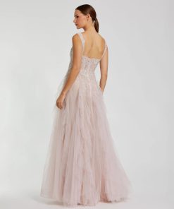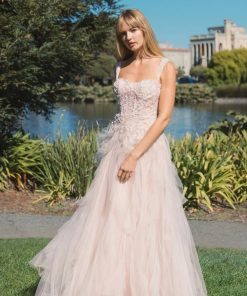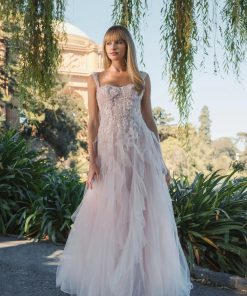 Embrace timeless elegance in our pink tulle ballgown with a twinkling embroidered bustier and soft, tiered ruffles—perfect for weddings, galas, or enchanting occasions.
