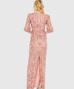 Mac Duggal Women’s Wedding Pink Elbow Length Sleeve Embellished Gown | Pink