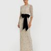 Mac Duggal Women’s Wedding Pink Beaded Striping Kimono Sleeve V Neck Gown | Rosewood